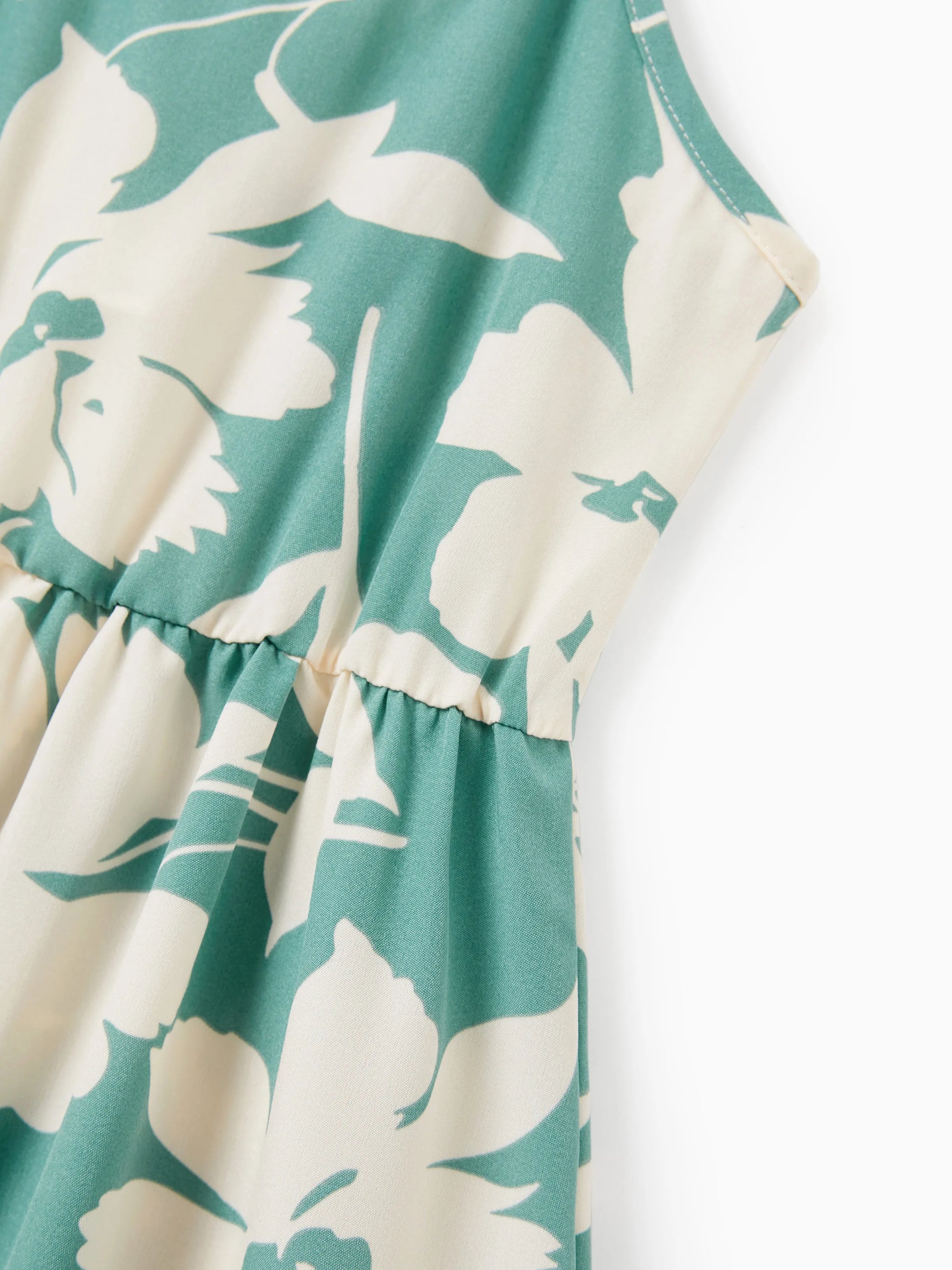 Our Emerald Leaf Family Matching Set features a soothing green leaf print designed for stylish summer days and memorable family moments.